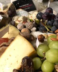 Kaasschotel ( 250gr., 10 soorten) met enkel Belgische kazen met lekkernijen en gepaste garnituren, waaronder konfituur, gedroogde vruchten, druiven, boter en een pakje Brugge Beschuiten.