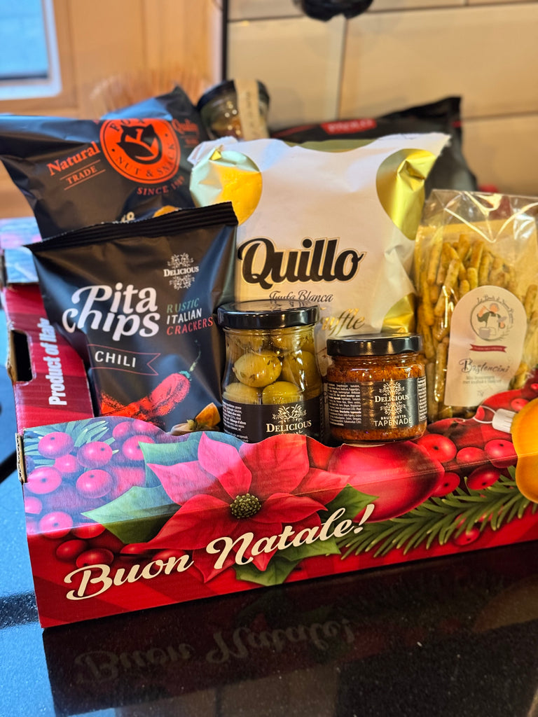 Een heerlijk gevulde mand vol lekkernijen. Bedrag vrij te kiezen, vanaf € 15. U kunt in de mededeling zelf ingeven welk genre . Genre apero (met wat tapas die bewaren), genre zoet (koekjes, konfituur en chocolade), of genre koken (pasta, olijfolie,...) of genre gemengd (beetje vanalles).